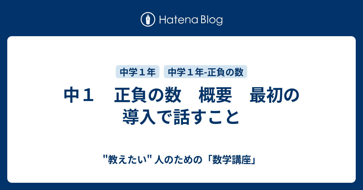 中1 正負の数 概要 最初の導入で話すこと 教えたい 人のための 数学講座